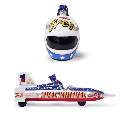 Evel Knievel ToysIn stockEvel Knievel™ 2-Piece Glass Ornament Set — Helmet & X-2 Skycycle Celebrate the fearless spirit of America’s most legendary daredevil with this ...